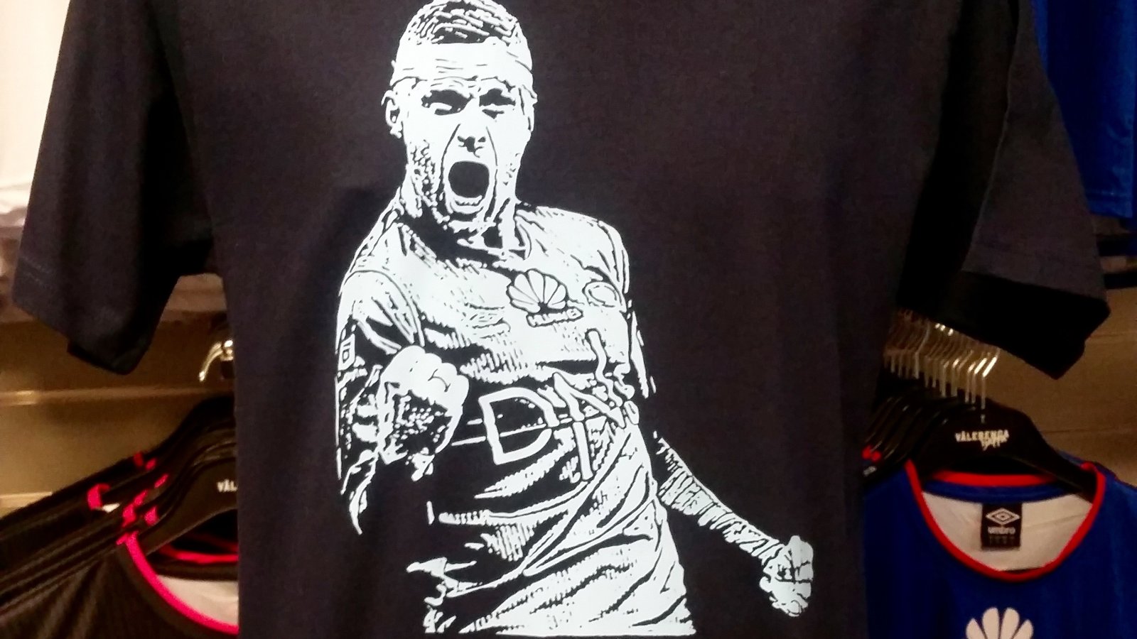 I tillegg har de ett «Ta 2 betal for 1»-tilbud på alle hettegensere, jakker og t-skjorter. Og det siste motivet Sjappa har laget er det legendariske bildet av Vålerenga-legenden Kjetil Wæhler.