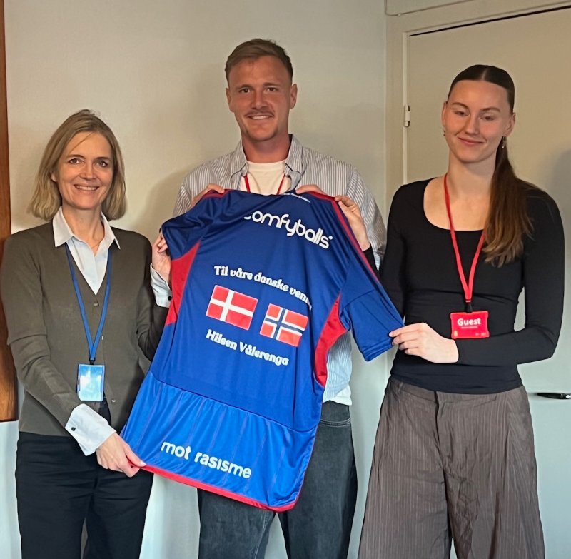 Ambassadøren fikk overrakt en kongeblå drakt av Vålerengas danske målvakter. Spillerne og ansatte på ambassaden utvekslet erfaringer om sine karrierer, forholdet til Norge og sin jobbhverdag.