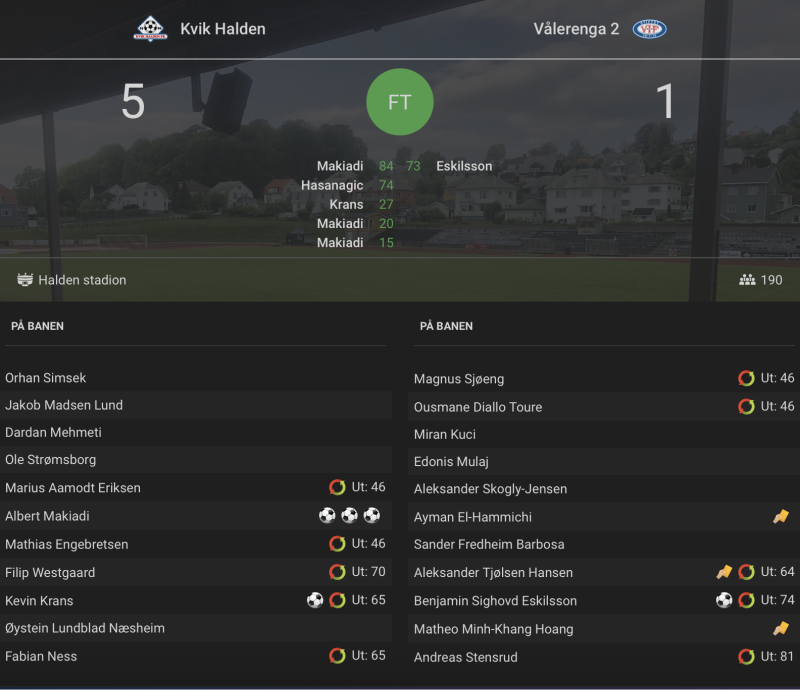 Albert Makiadi (2) og Kevin Krans scora for hjemmelaget, og selv om Benjamin Eskilsson satte inn en redusering fra straffemerket kvarteret før slutt, var det aldri noe tvil om hvor seieren skulle havne.